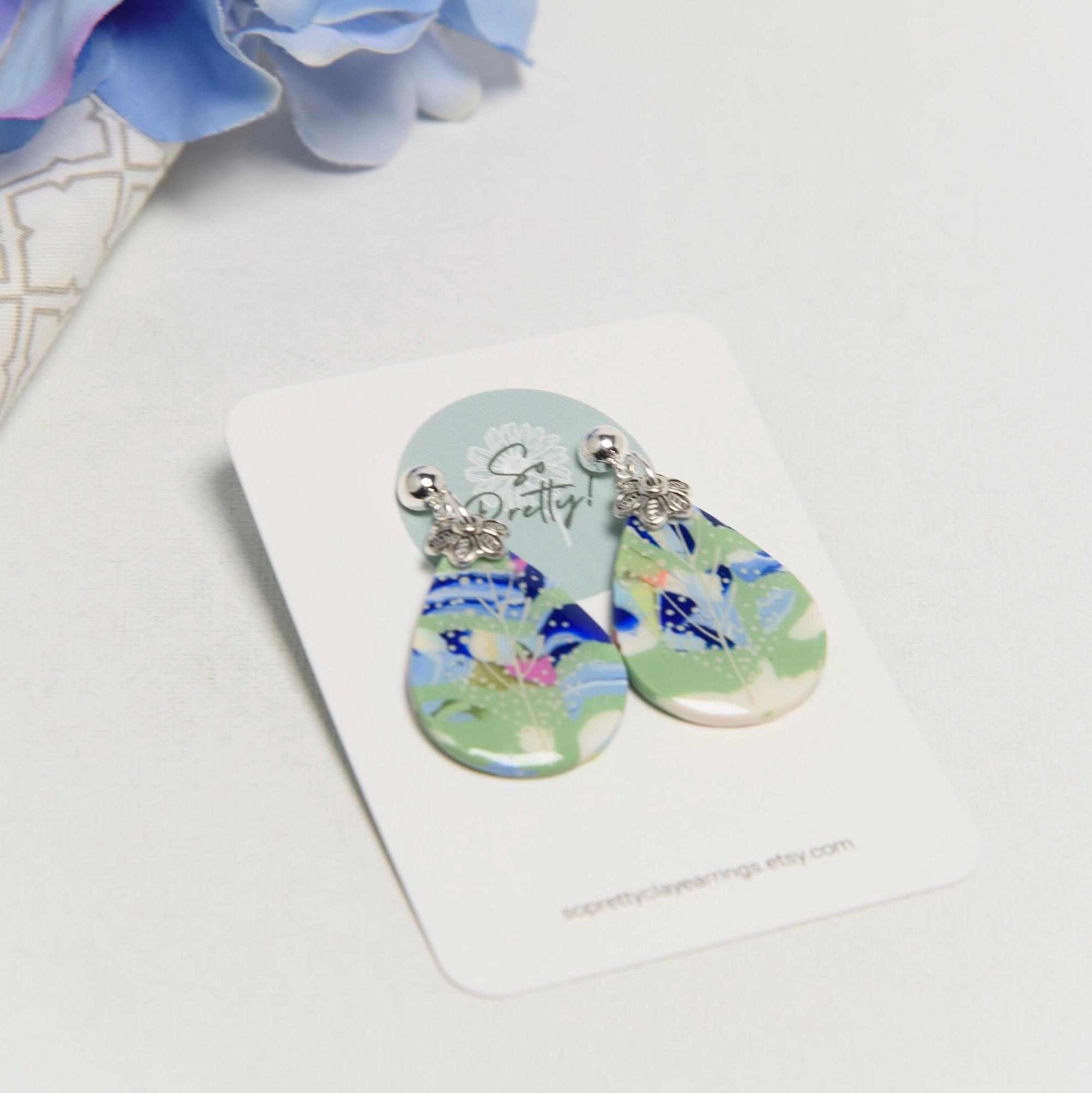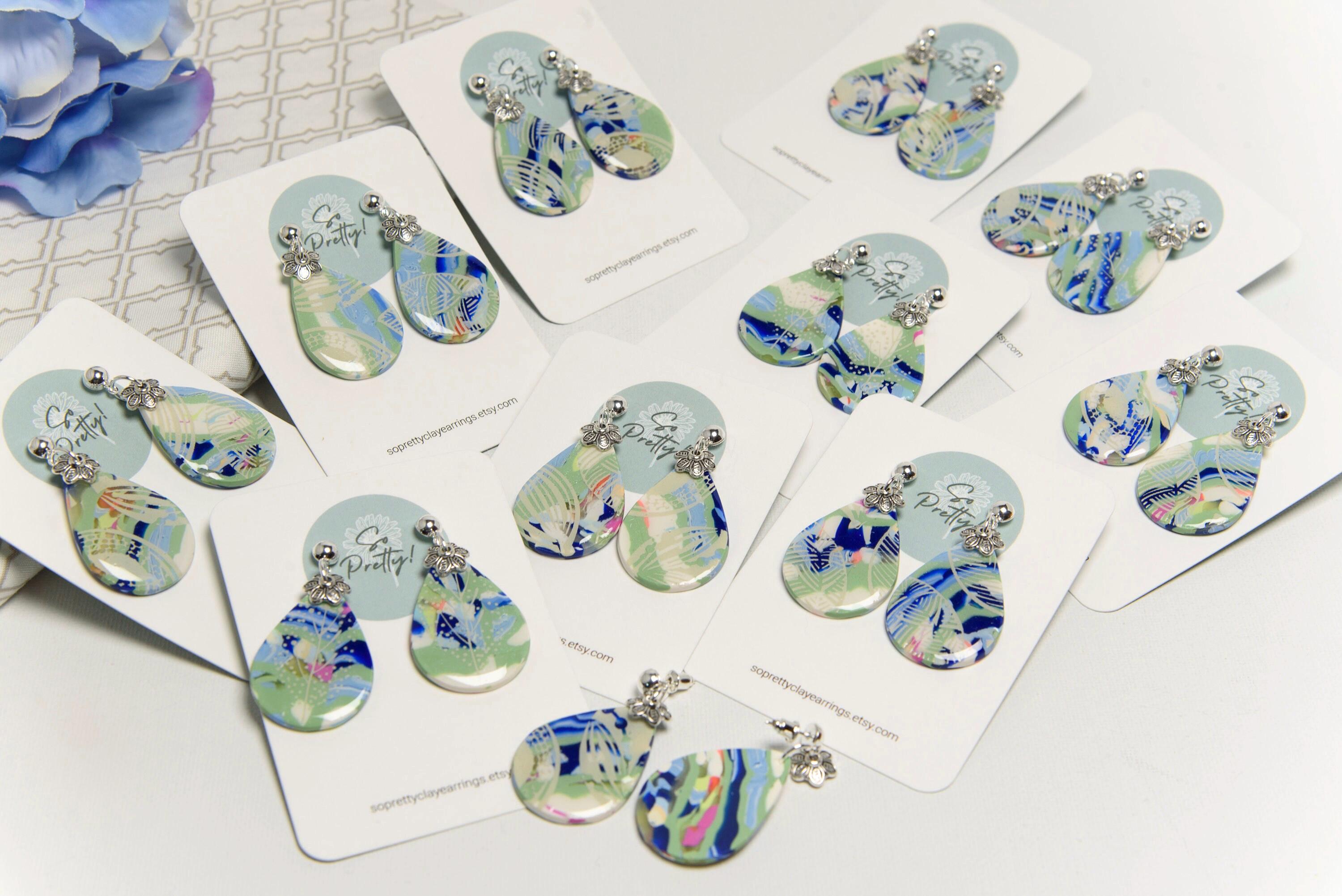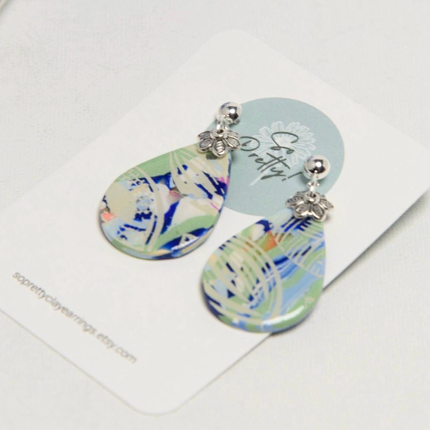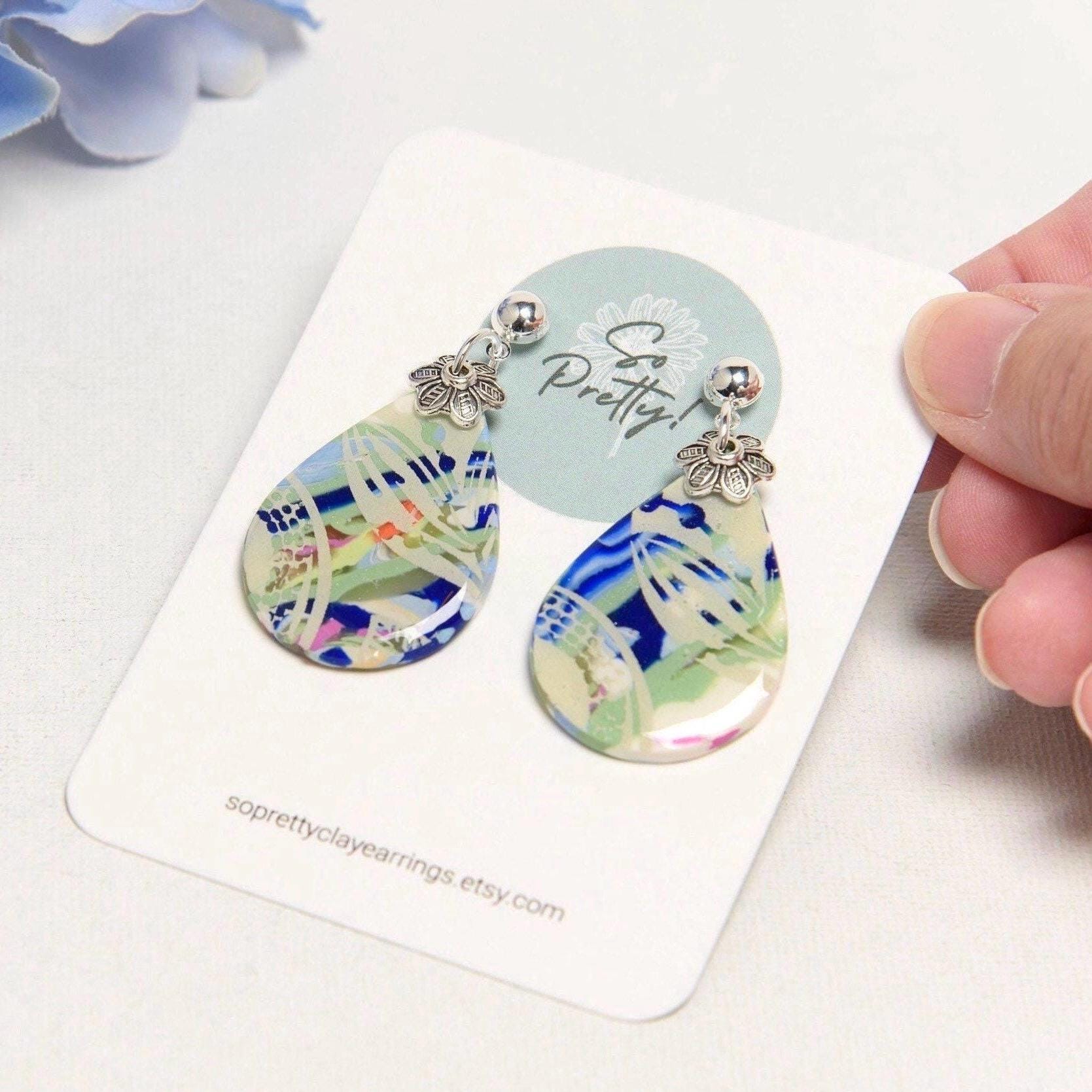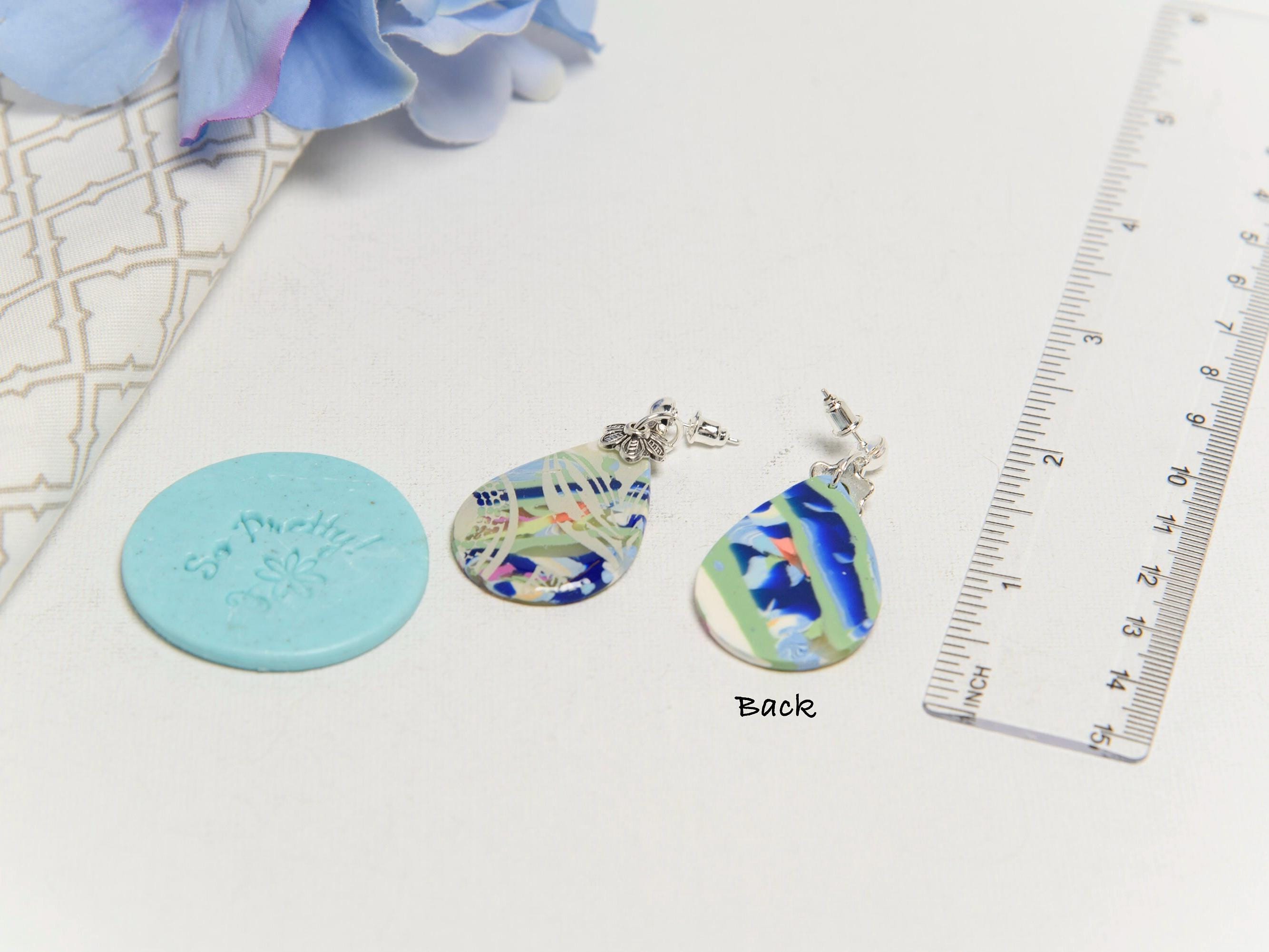 Polymer clay is a plastic, which means you can wash your earrings with water. To clean pieces, gently hand-wash them with soap and water. Do not use a dishwasher to clean as the heat can damage your earrings. While polymer Clay is waterproof, it is best not to shower or swim while wearing your earrings - and also so you do not lose your earrings. Please do not store earrings in direct sunlight or in your car especially during hot summer months as colors may fade over time.