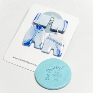 Polymer clay is a plastic, which means you can wash your earrings with water. To clean pieces, gently hand-wash them with soap and water. Do not use a dishwasher to clean as the heat can damage your earrings. While polymer Clay is waterproof, it is best not to shower or swim while wearing your earrings - and also so you do not lose your earrings. Please do not store earrings in direct sunlight or in your car especially during hot summer months as colors may fade over time.
