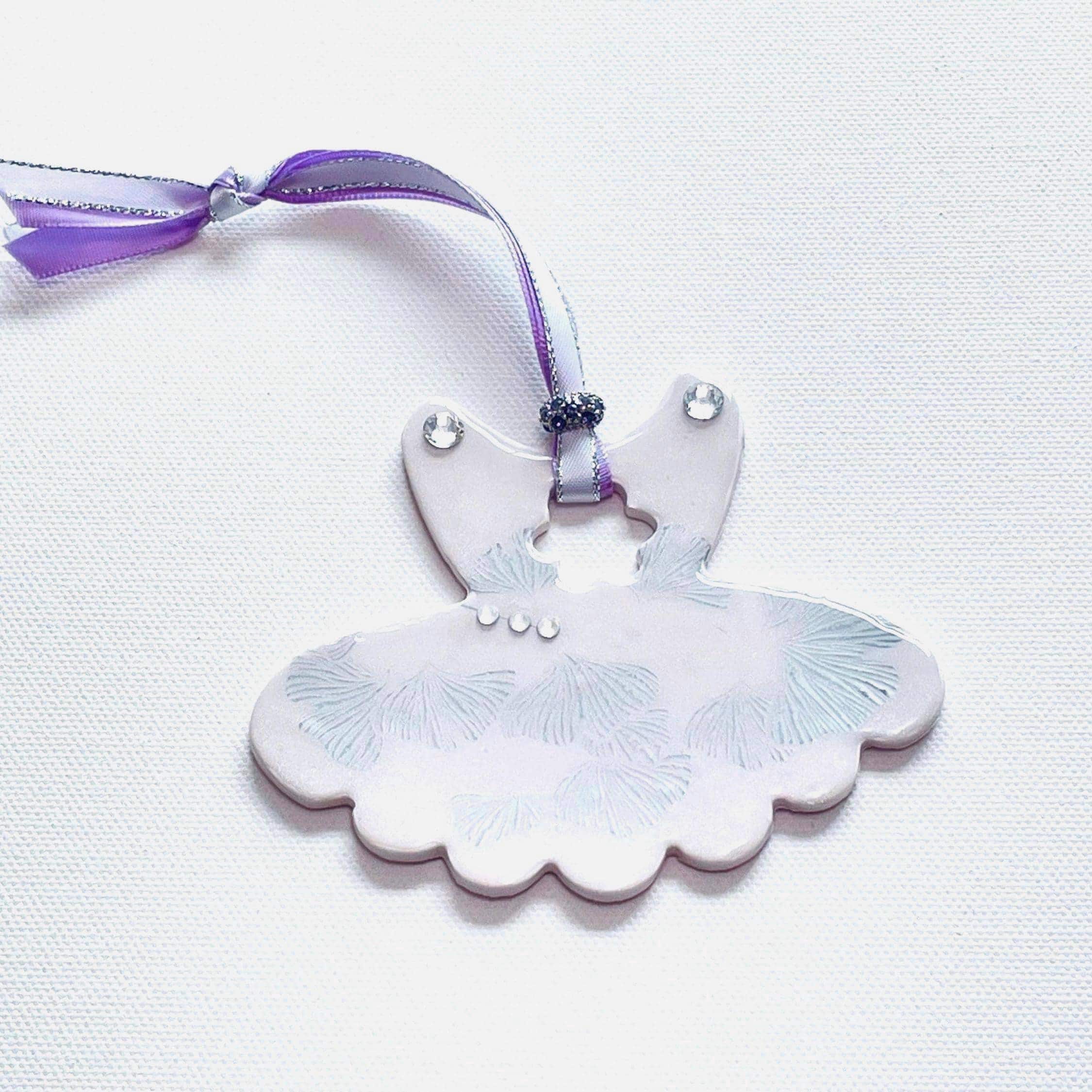 Handcrafted Polymer Clay Ballet Tutu Ornament: Rhinestone Bead, Holiday Keepsake Gift