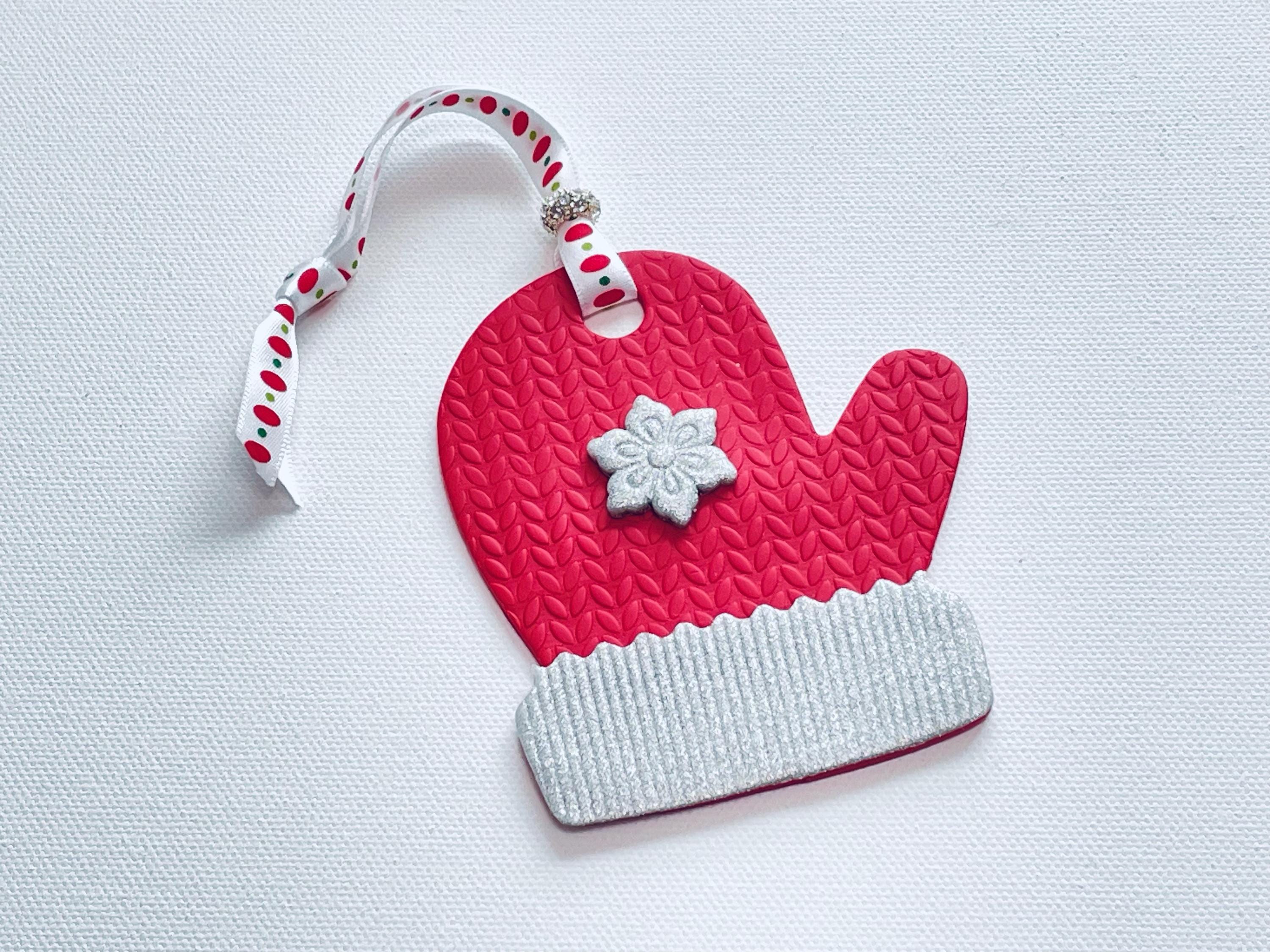 Handcrafted Polymer Clay Mitten Ornament: Rhinestone Bead, Holiday Keepsake Gift