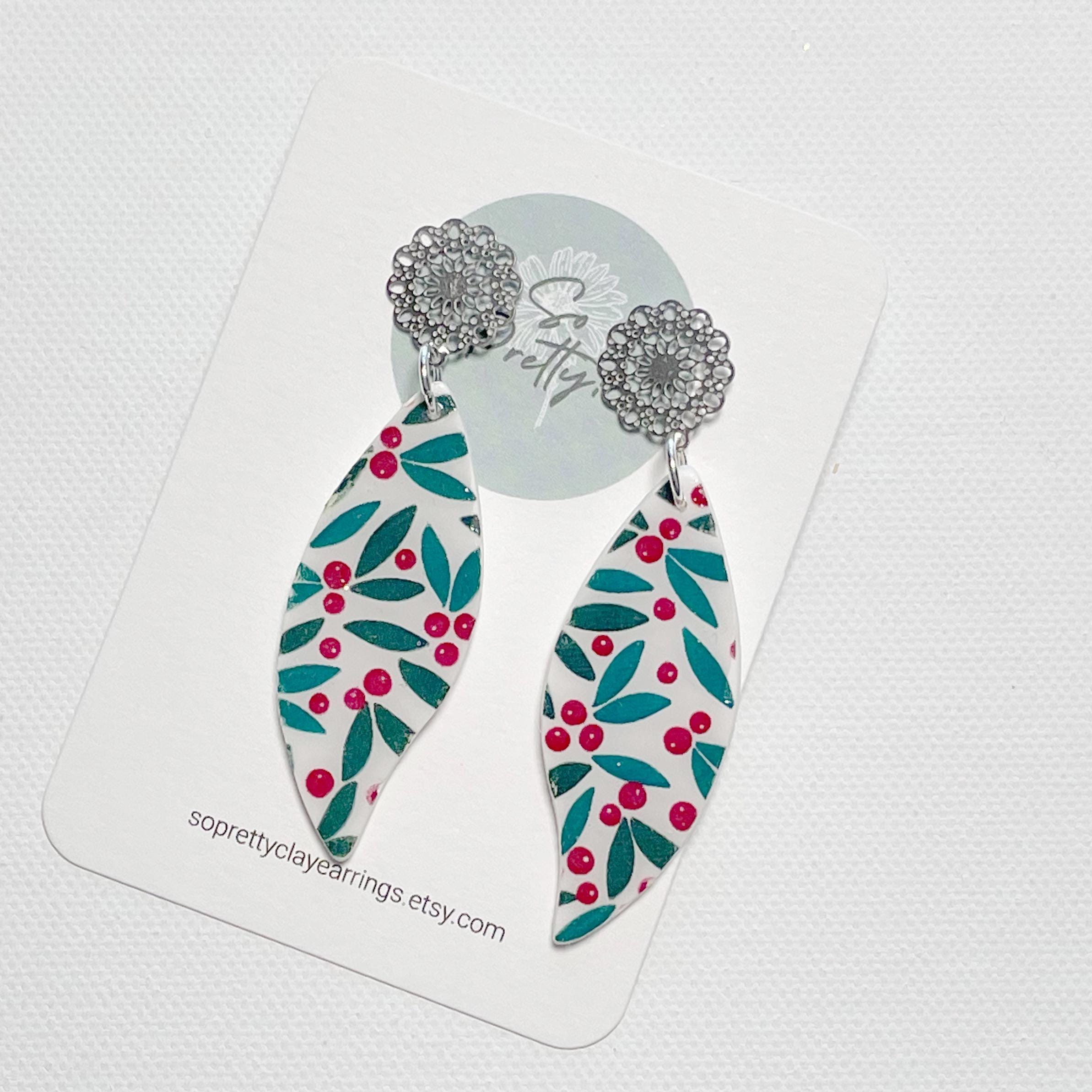 Polymer clay is a plastic, which means you can wash your earrings with water. To clean pieces, gently hand-wash them with soap and water. Do not use a dishwasher to clean as the heat can damage your earrings. While polymer Clay is waterproof, it is best not to shower or swim while wearing your earrings - and also so you do not lose your earrings. Please do not store earrings in direct sunlight or in your car especially during hot summer months as colors may fade over time.