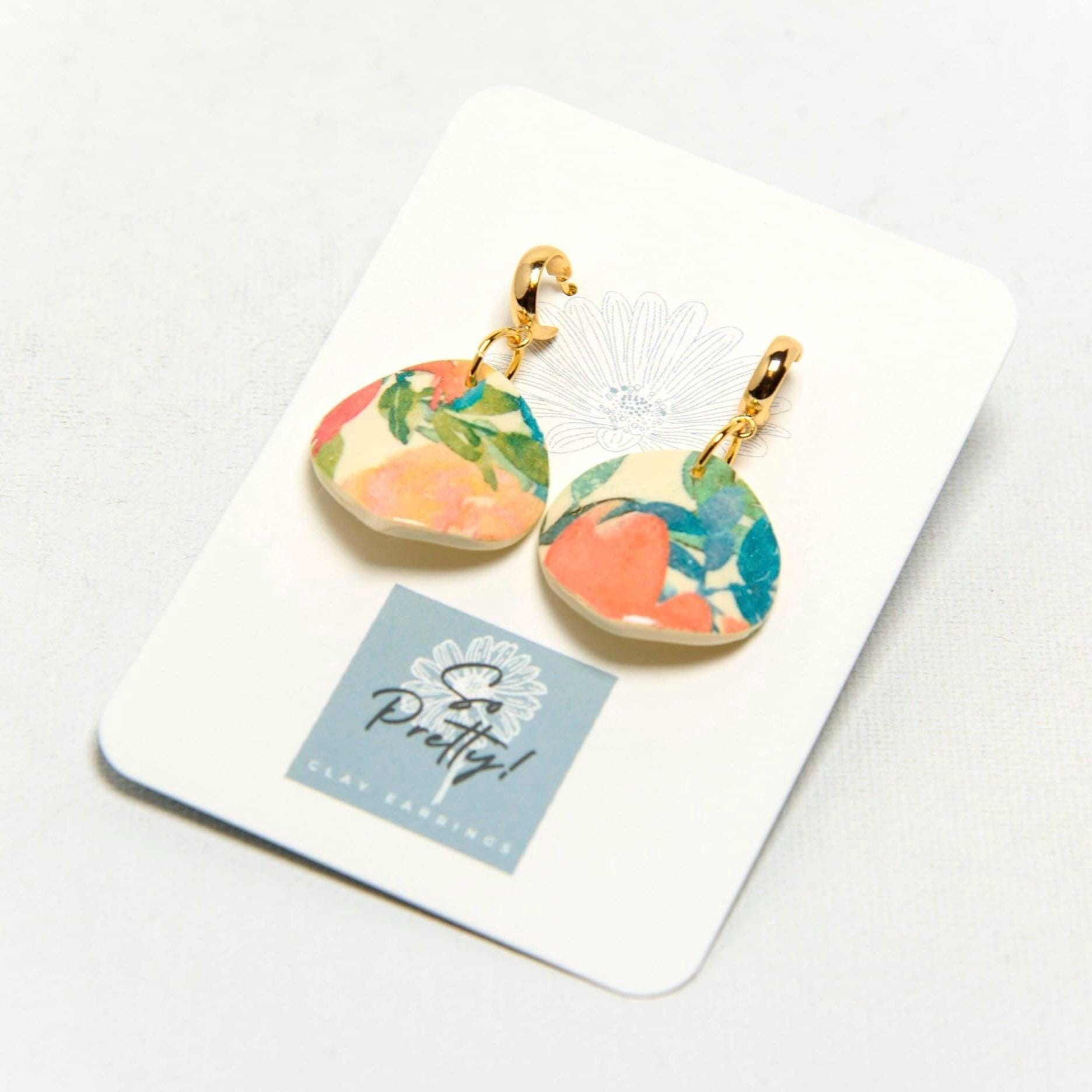 Polymer clay is a plastic, which means you can wash your earrings with water. To clean pieces, gently hand-wash them with soap and water. Do not use a dishwasher to clean as the heat can damage your earrings. While polymer Clay is waterproof, it is best not to shower or swim while wearing your earrings - and also so you do not lose your earrings. Please do not store earrings in direct sunlight or in your car especially during hot summer months as colors may fade over time.